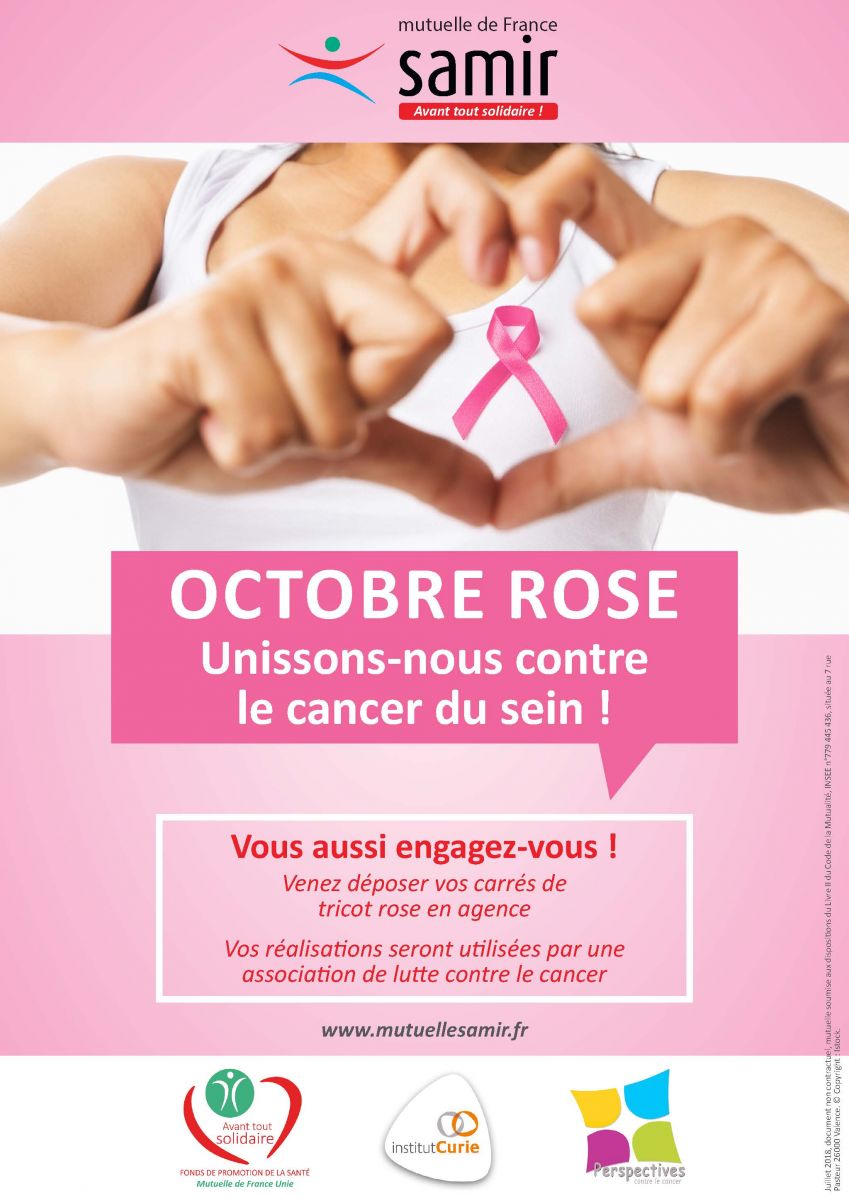 Cette année, la Mutuelle Samir a décidé de se joindre à la lutte pour sensibiliser et mobiliser un public large dans la lutte contre le cancer du sein. Les agences Mutuelle de France Unie s'impliquent donc dans l’opération durant tout le mois.