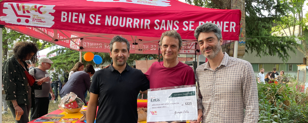 Le Groupe Entis et ses mutuelles partenaires, dont la Mutuelle Samir sont fiers de remettre à l’association VRAC un premier chèque de 1 225 €.